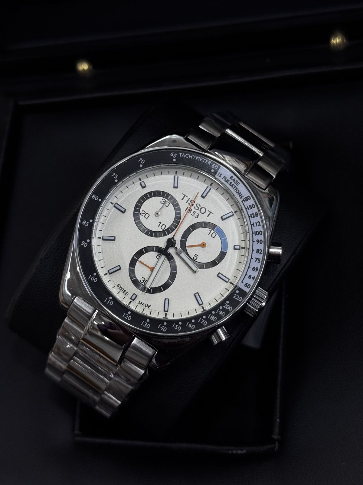 ✨ Classic white dial with sporty chronograph design. Looks premium on the wrist and suitable for office, casual, and formal wear
